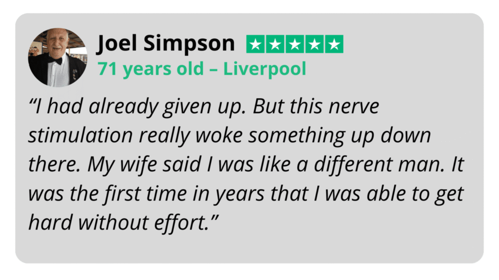 Dr. Rossenberg’s method focuses on localised, low-frequency neurostimulation — designed specifically to target the nerve pathways responsible for initiating and sustaining erectile response.