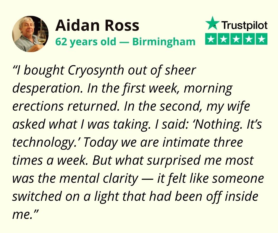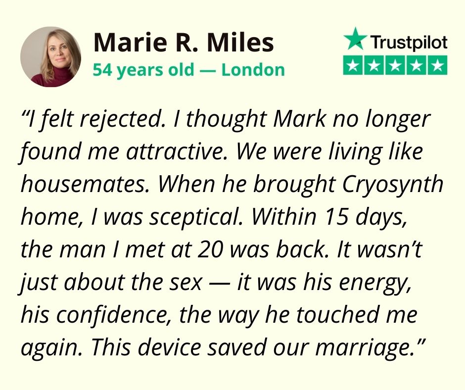 Arthur was the first civilian to test Cryosynth outside a hospital setting. His instructions were simple: 5 minutes of application to the glans, 2 hours before any intended intimacy.