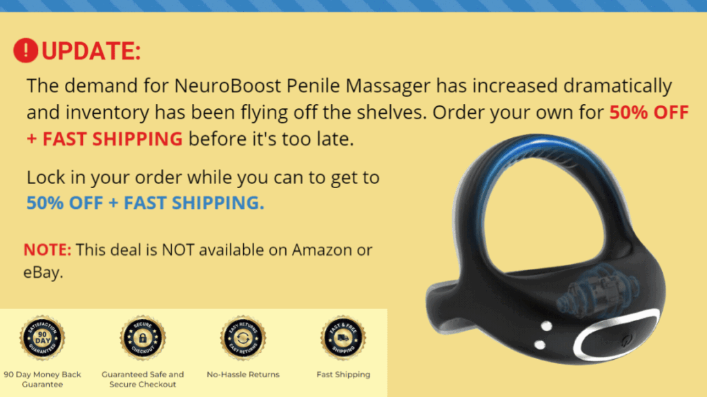 I suggest you take advantage of this unique offer and click the button below to get the NeuroBoost Penile Massager for the lowest price ever.